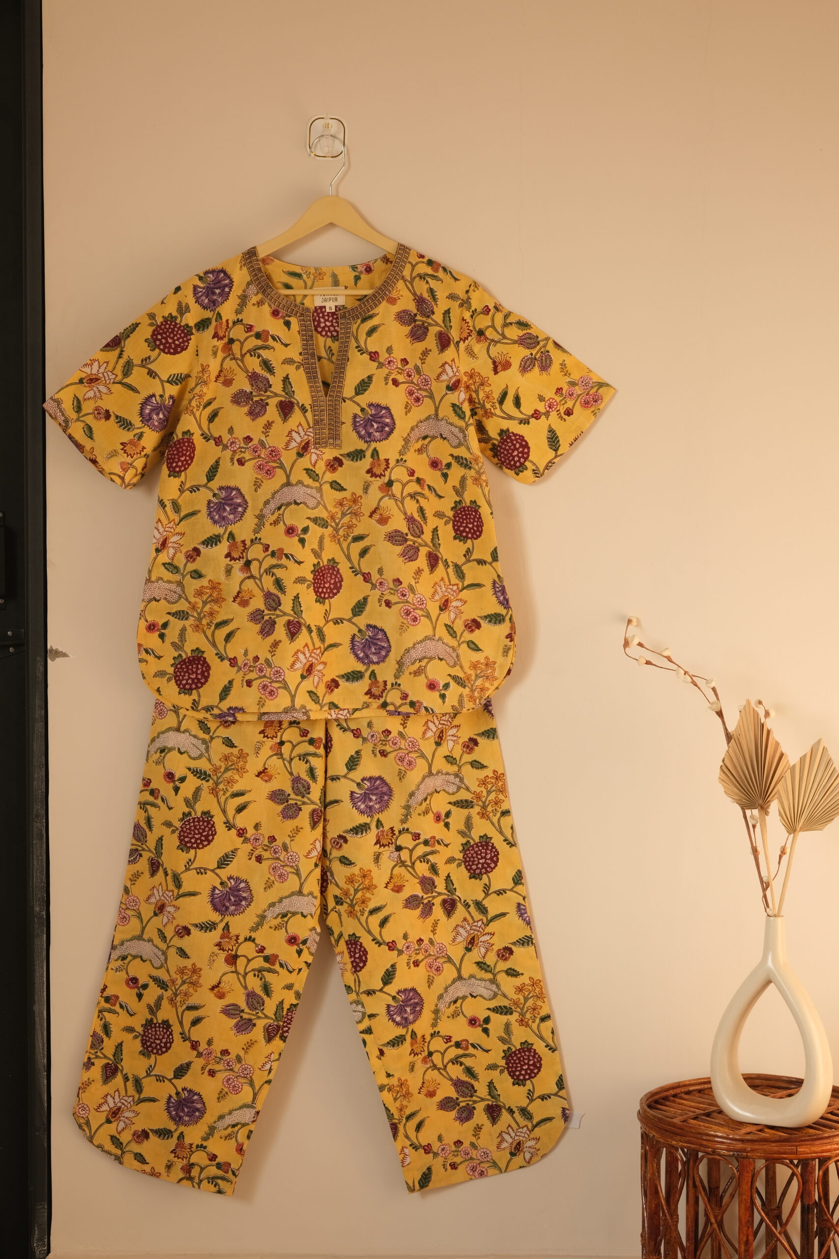 • Hand block printed by artisans in Jaipur